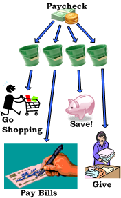 When you get paid, you divide the cash into buckets which represent all the things you spend money on-- rent, groceries, movies, the water bill, etc.